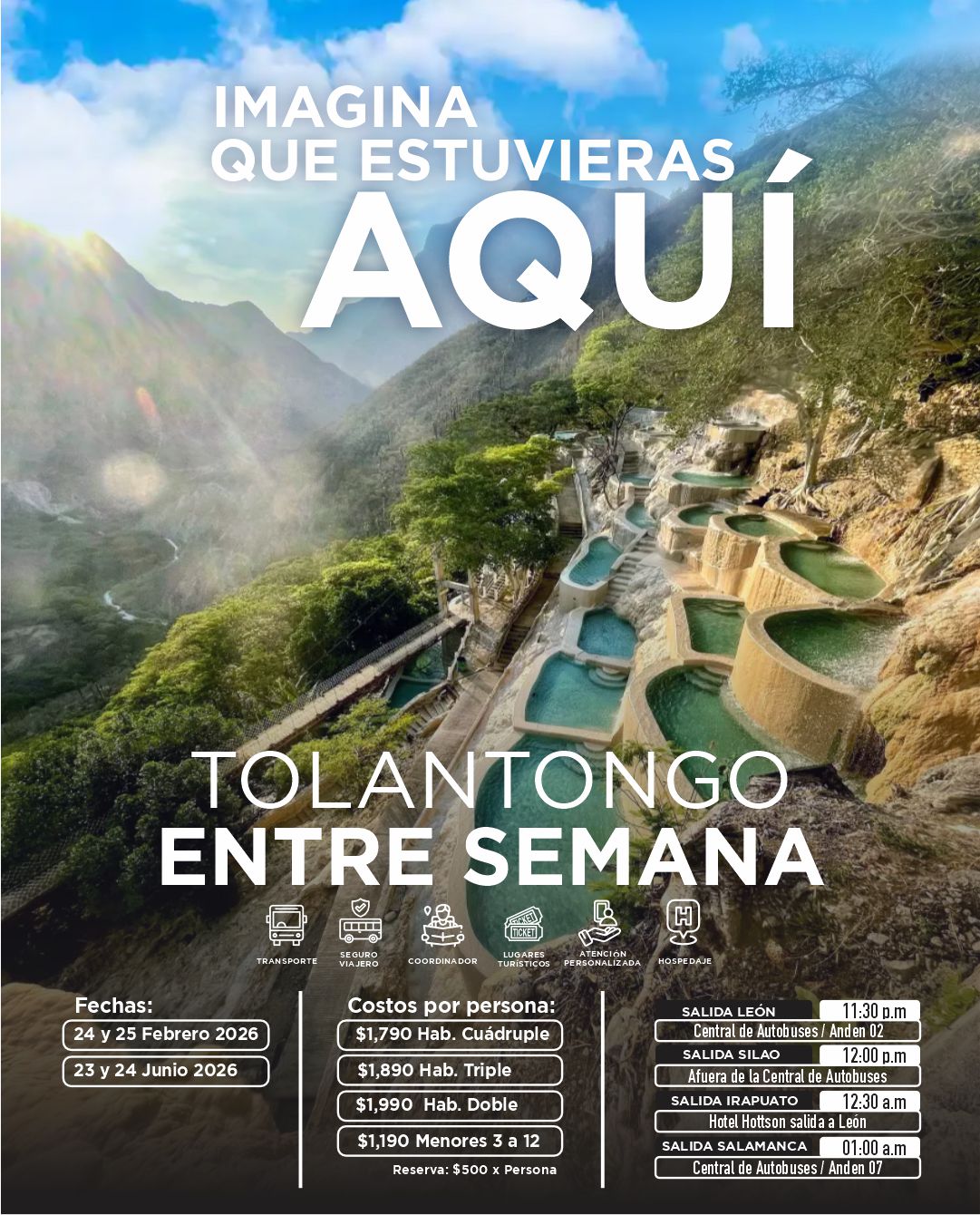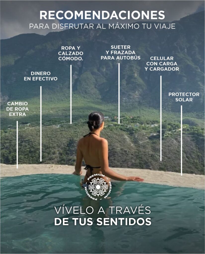 Grutas con túneles que emanan vapor de entre las rocas y un rio donde corren aguas termales. Así mismo ofrecen un sinfín de actividades como puentes colgantes, tirolesa, senderismo y albercas.